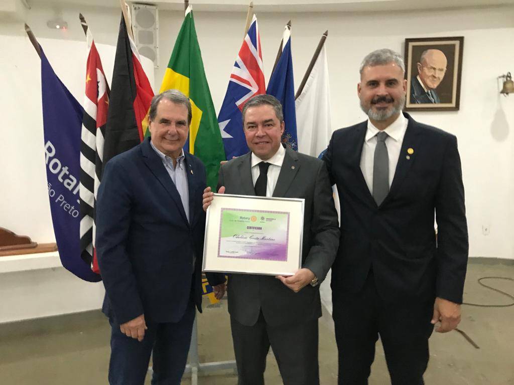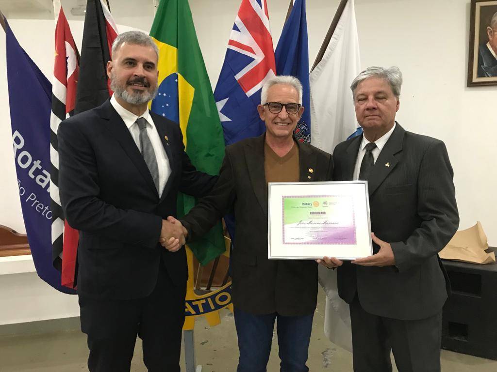 Nesta reunião, João Mansano que completou 30 anos de Rotary, recebeu um diploma do seu padrinho Márcio Santiago, que foi presidente do nosso clube na gestão 1995-96. Francyne Veiga foi homenageada por Sirene Marley Gregoldo e Odalécio Martins por Carlos Alencastre, ambos por completar 5 anos no Rotary Club de Ribeirão Preto.