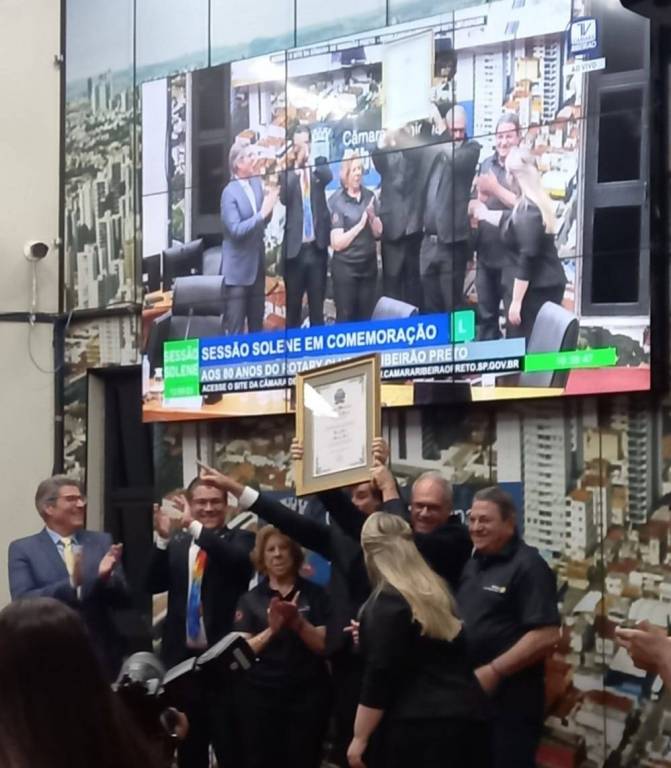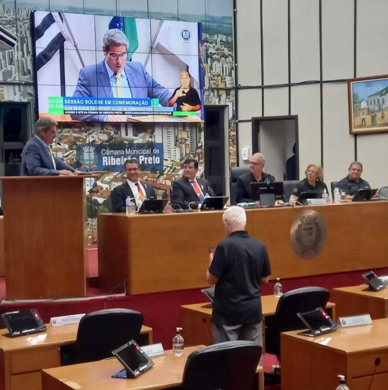 Aconteceu em 13 de setembro na Câmara Municipal de Ribeirão Preto, uma Sessão Solene que fez a Homenagem ao nosso clube pelos 80 Anos de Fundação e pelos serviçoes prestados a comunidade através dos Vereadores André Rodini, Mauricio Gasparini e Marcos Papa. Participaram os nossos associados e familiares em grande número, o Governador Rafael de Luca Passos 2023-24, o Governador Indicado José Roberto Malfará de Souza 2024-25, Carlos Daniel Diretor de Imagem Pública de RI, presidentes e representates de outros clubes de Ribeirão Preto. Após a solenidade foiservido um coquetel a todos os presentes.