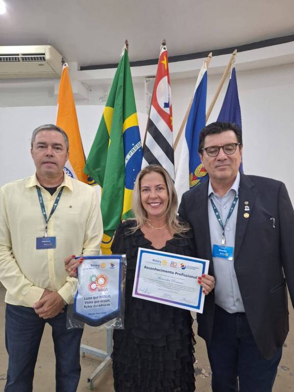 Aconteceu em 24 de janeiro na Fundação dos Rotarianos, a nossa homenagem para Profissionais que através de suas atividades contribuiram na nossa comunidade transformando vidas. Em janeiro, o Rotary dedica um espaço permanente, e nesta oportunidade foram reconhecidas as seguintes pessoas destaque na prestação de serviços à comunidade: Alessandra Romano no segmento de Jornalismo, como apresentadora do Programa "Geração do Bem" na TV THATHI, voltado para o voluntariado, e como fundadora da Instituição "Geração do Bem" que tem como causa o Combate à Fome, para pessoas necessitadas. Jorge Pimenta no segmento de Serviço Público, como Presidente do Programa Bom Prato na cidade de Ribeirão Preto, que tem como objetivo oferecer refeições saudáveis e de alta qualidade a um custo acessível à população em vulnerabilidade social. Kleber Gomes no segmento de Administração, como CEO da Ourofino Saúde Animal.